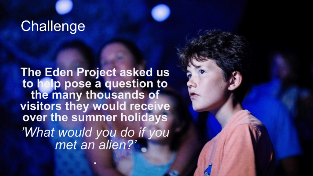 An alien spaceship has crashed into the Eden Project arena. You are tasked helping to make contact by collecting the strange symbols that have been discovered throughout the debris…
