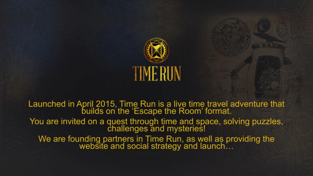 Time Run is a high-tempo live adventure for groups of 3-5 people and has been reviewed as the best escape game in London.